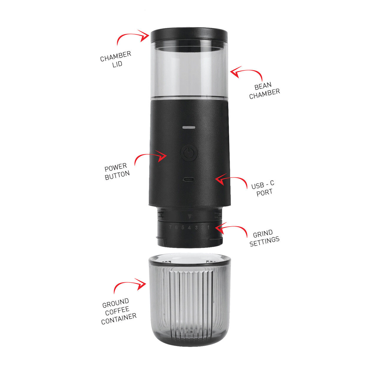 - 30g coffee bean capacity for fresh grinding anywhere