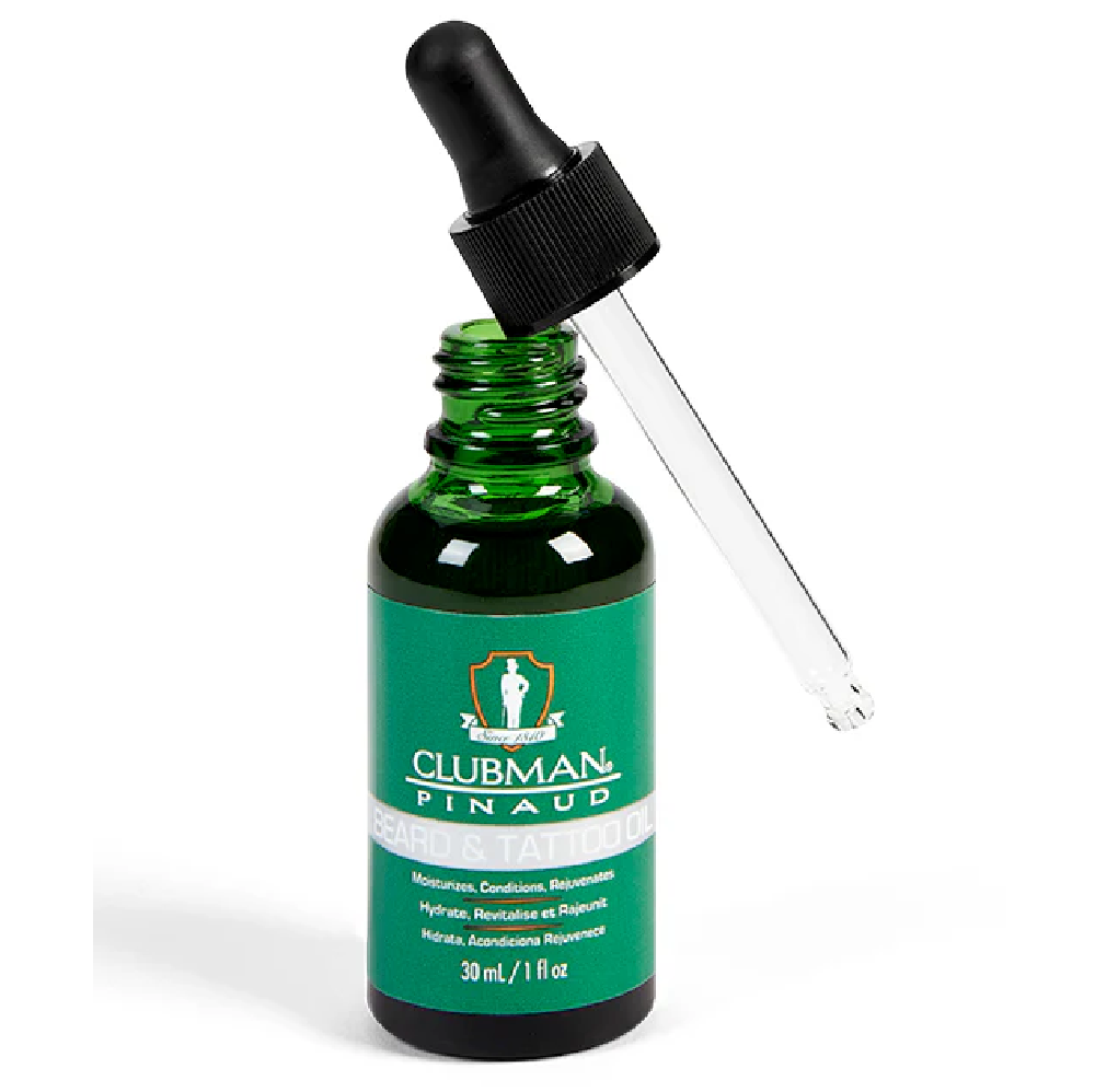 - Keep It Simple: Save time and effort! A good grooming routine need not be complicated. Our Clubman Beard and Tattoo Oil is designed to be effortless and easy to use. Just apply a small amount to your beard and tattoos, massage gently, and enjoy instant hydration and shine. Perfect for your bathroom counter, gym bag, or office drawer! Upgrade your men’s grooming kit today.
