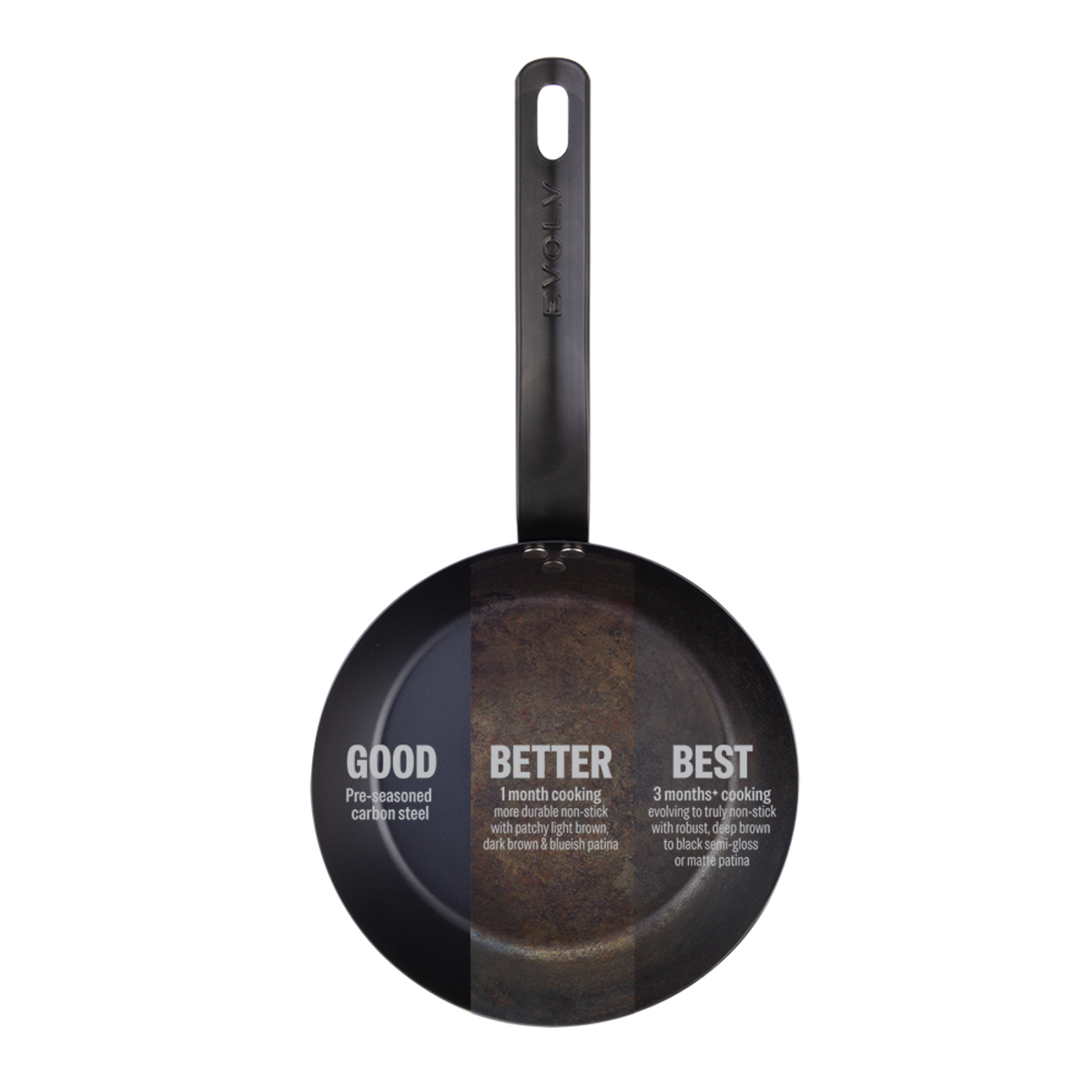 Upgrade your everyday cooking with the Evolv Pre-seasoned Carbon Steel Fry Pan. Crafted from heavy-gauge 2mm carbon steel, it delivers fast, even heat for superior searing, browning and frying.