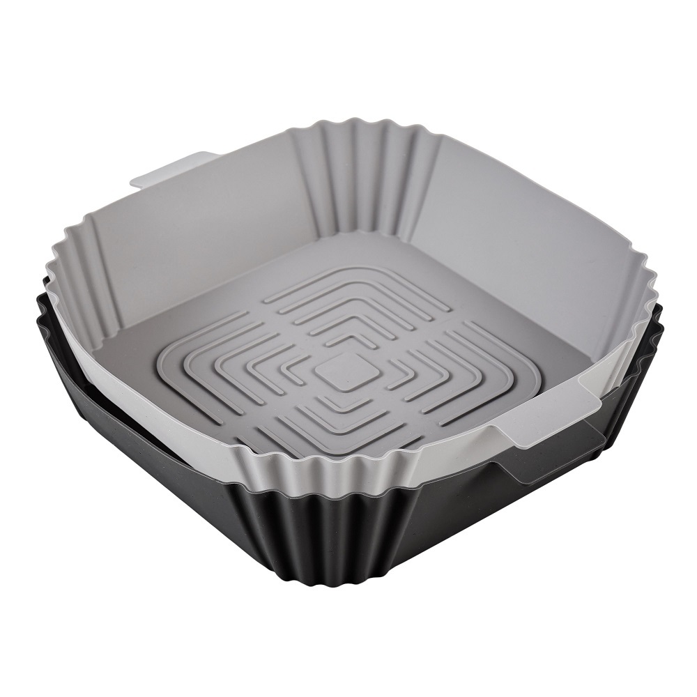 - Set of 2 and easily fits most standard square air fryer baskets.