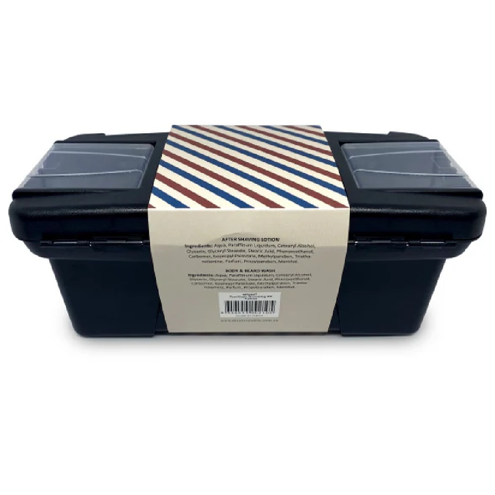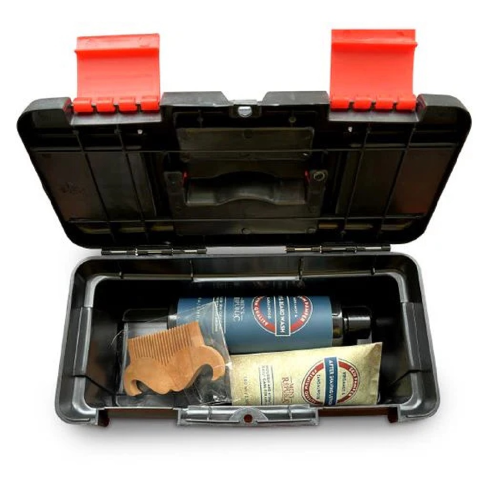 A thoughtful gift for the DIY man who also enjoys grooming! This Men's Republic 4-piece Grooming Kit includes body & beard wash, after shave lotion and a beard brush, all packed in a nifty solid tool case.