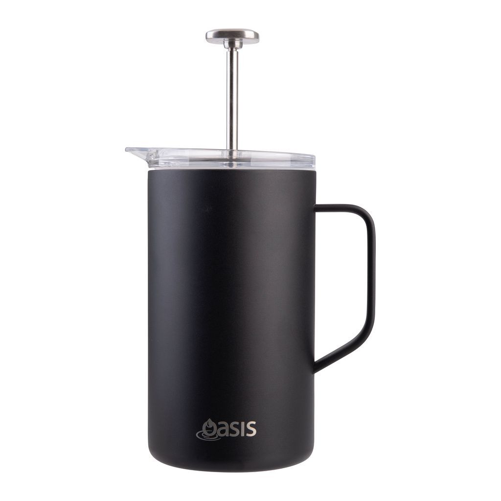 OASIS STAINLESS STEEL DOUBLE WALL INSULATED COFFEE PRESS - 8 CUP - 1 Litre - BLACK