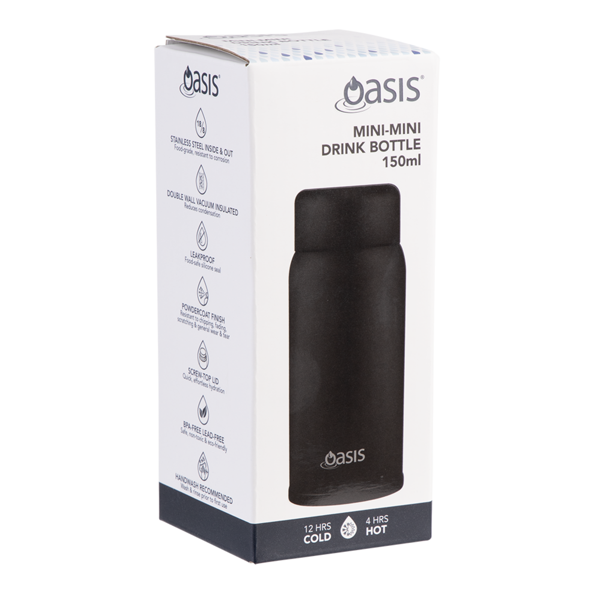 OASIS STAINLESS STEEL DOUBLE WALL INSULATED MINI DRINK BOTTLE 150ml - BLACK