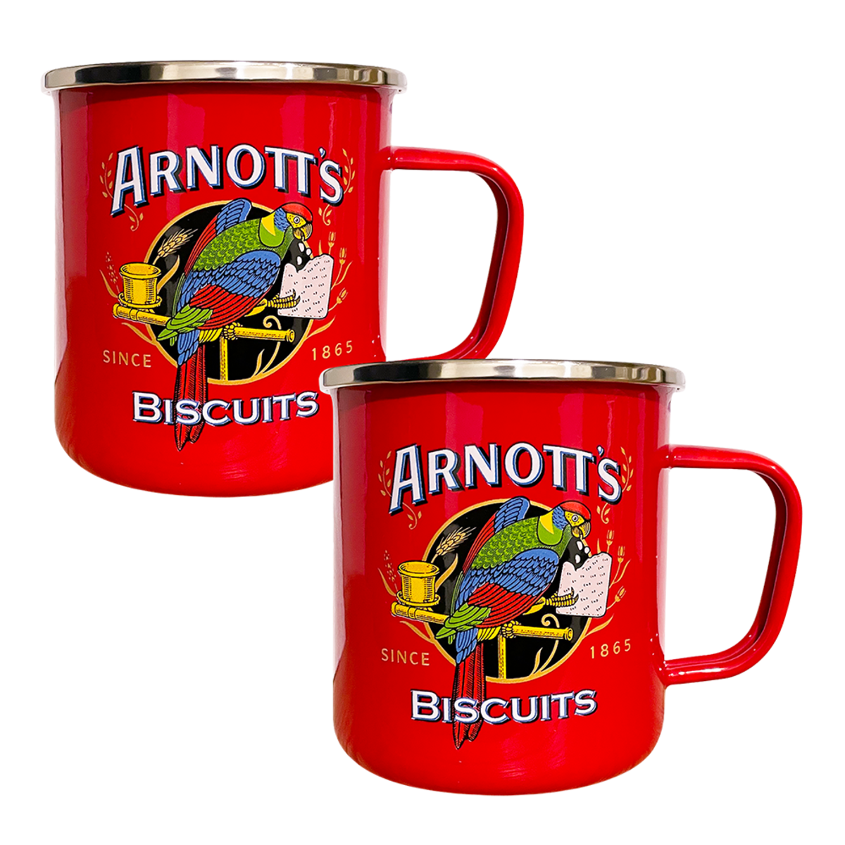 Bring timeless style and everyday practicality to your kitchen with this set of 2 enamel mugs. Perfect for drinking tea, coffee, hot chocolate, and more.