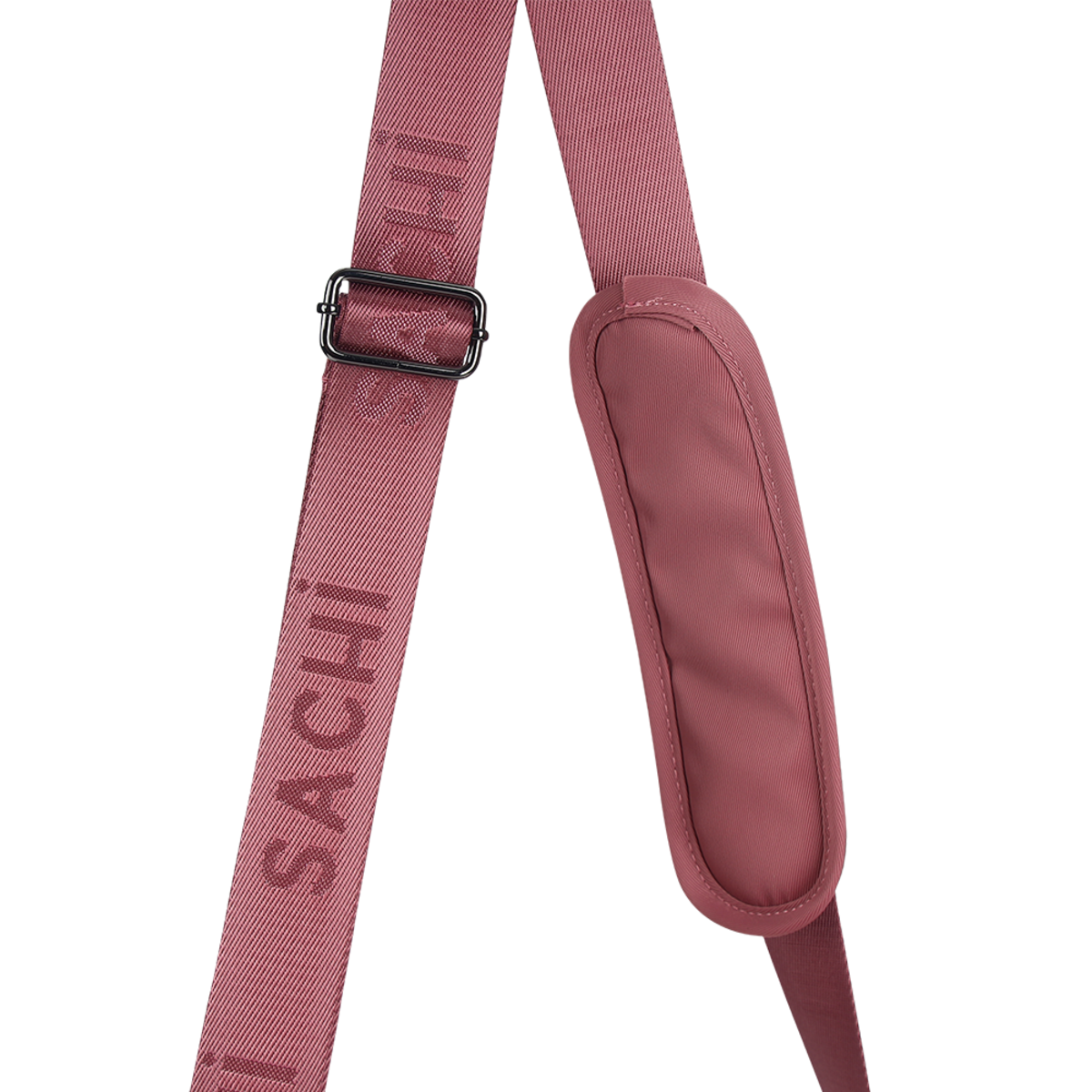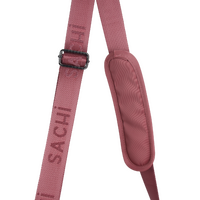 - Detachable, adjustable padded shoulder strap with jacquard Sachi branding.