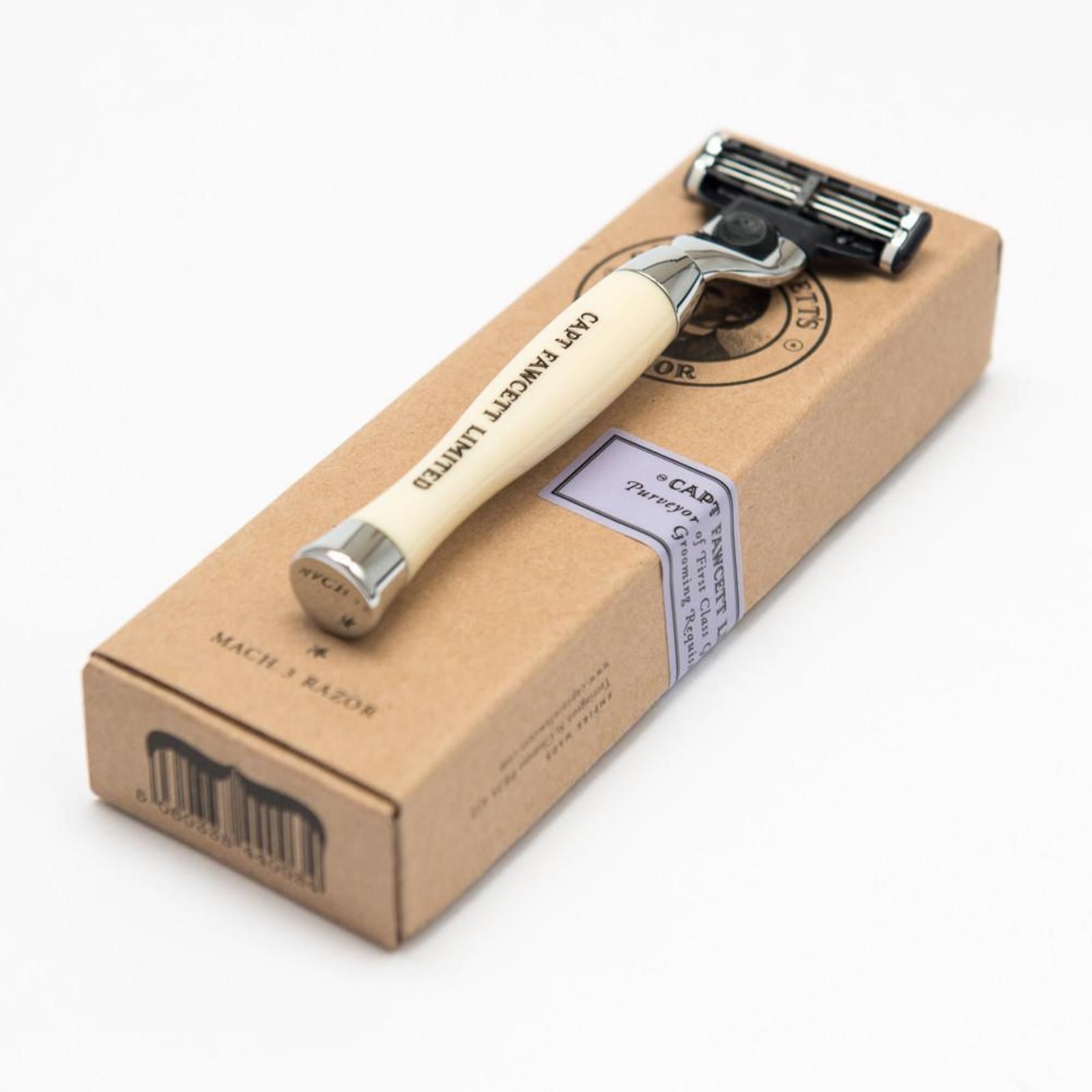 - Designed to house your Captain Fawcett Mach 3 safety razor, it's quite simply the ideal travel accessory, keeping the blades both protected and safe from prying hands.