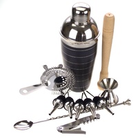 PURPLESPOILZ 10 PIECE BLACK COCKTAIL SHAKER SET WITH WAITERS FRIEND