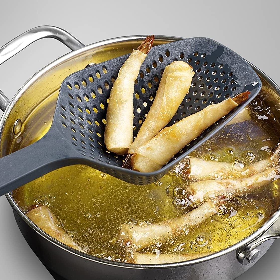 This simple kitchen utensil allows you to scoop, drain and serve food straight from a hot pan or baking tray.