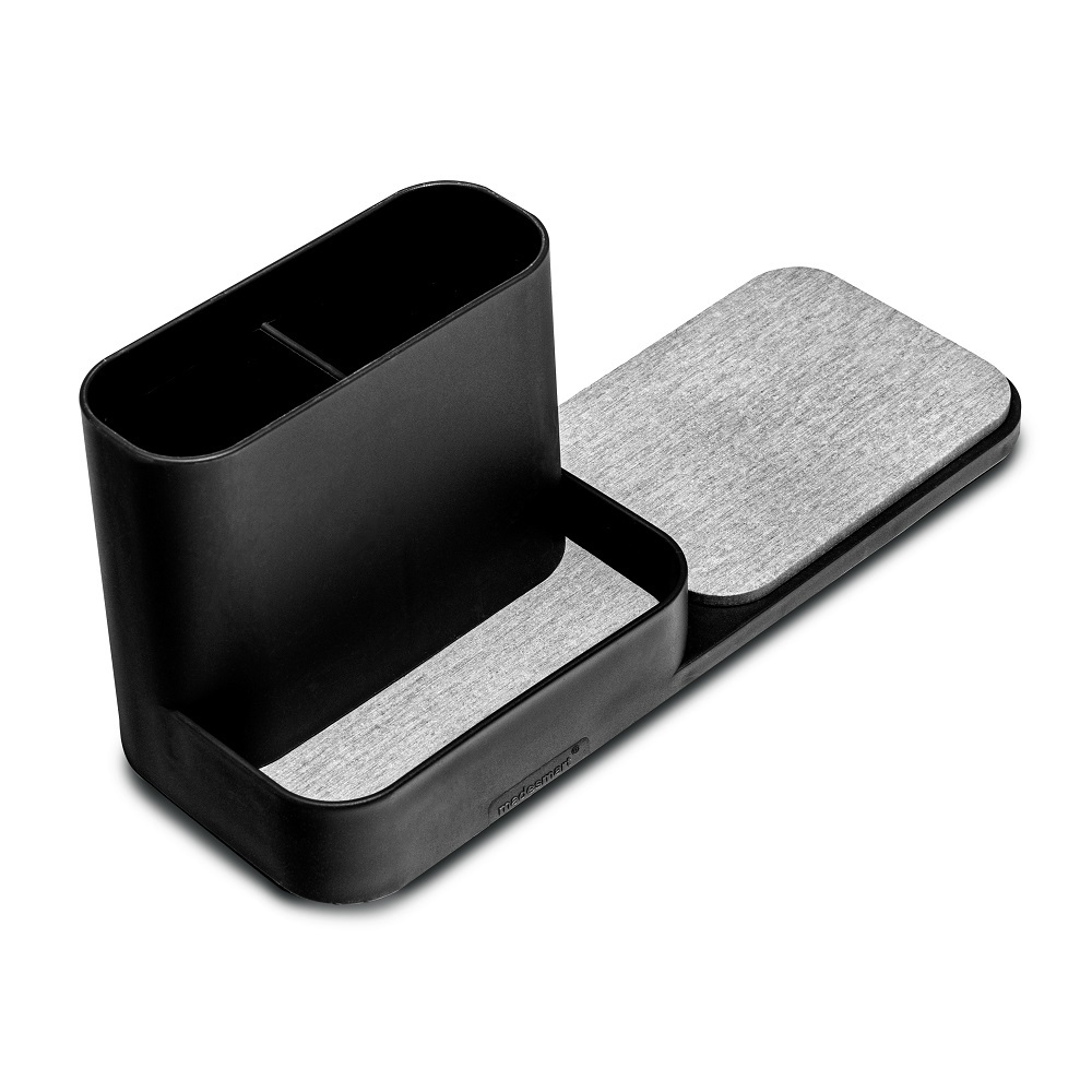 The madesmart Drying Stone Small Sink Station enhances kitchen sinks with style, efficiency, and a modern twist. This two-compartment sink station is constructed of high-quality plastic and an absorbent, mineral-based material designed to accelerate the evaporation of moisture. Composed of non-toxic, naturally occurring materials with antimicrobial and antibacterial properties, the Drying Stone eliminates germs through a rapid dehydration process upon contact to improve the hygiene of sponges, dish wands, and scrub brushes. If water-logged, the Drying Stone detaches for easy cleaning and can be set in the sun or baked in the oven to accelerate drying.