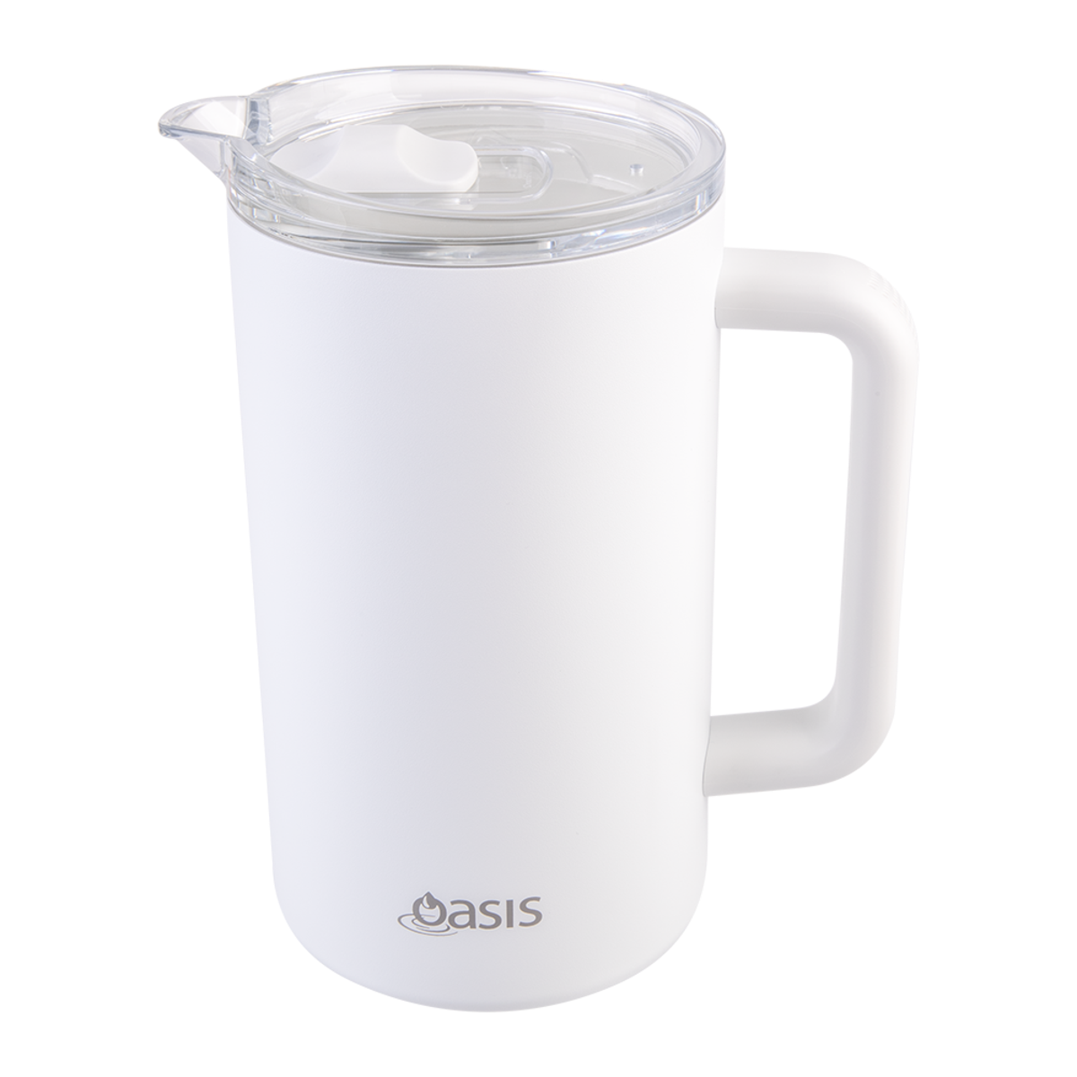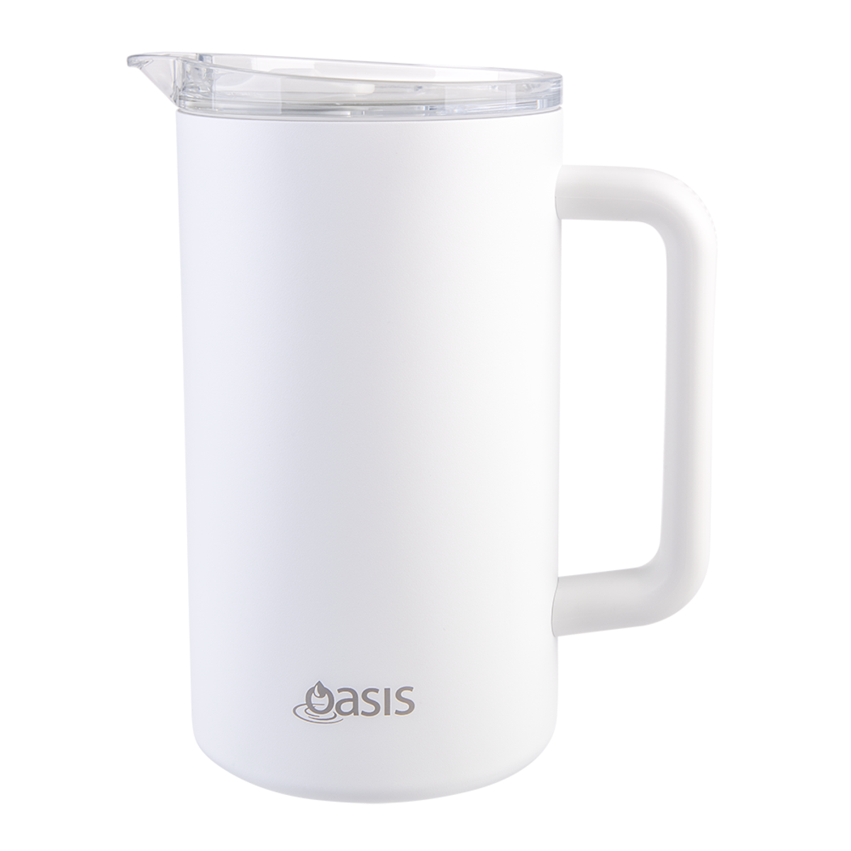 OASIS CERAMIC LINED STAINLESS STEEL TRIPLE WALL INSULATED WATER PITCHER 1.5L - WHITE