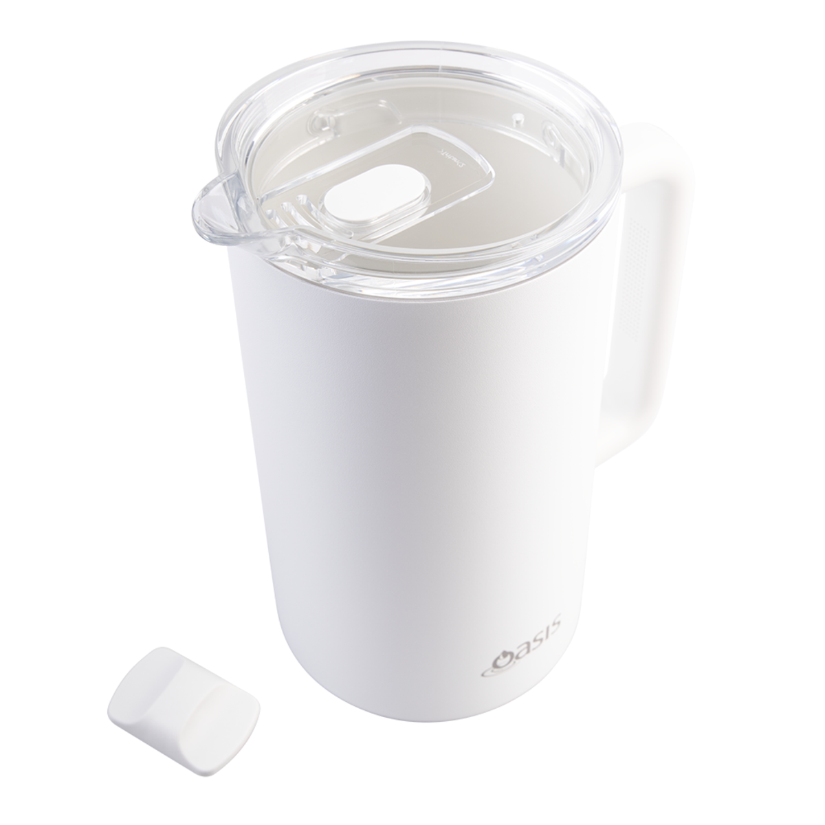 Sleek, durable, and built for everyday elegance, the Oasis Ceramic Lined Triple Wall Insulated Water Pitcher is designed to keep drinks at their best for longer. Crafted from premium 18/8 stainless steel inside and out, it features triple wall vacuum insulation to minimise heat transfer and condensation, while the ceramic lining ensures a pure, untainted taste with no metallic flavour. The large 1.5L capacity makes it ideal for serving chilled water, infused beverages, or freshly brewed tea, and its splashproof Tritan™ lid includes a built-in ice filter for smooth, mess-free pouring. A magnetic slide lock provides an ultra-smooth, secure closure, while the powdercoat finish offers lasting resistance to chips, scratches, and fading. BPA-free, lead-free, and eco-friendly, this pitcher combines modern design with reliable performance—perfect for both home entertaining and daily hydration.