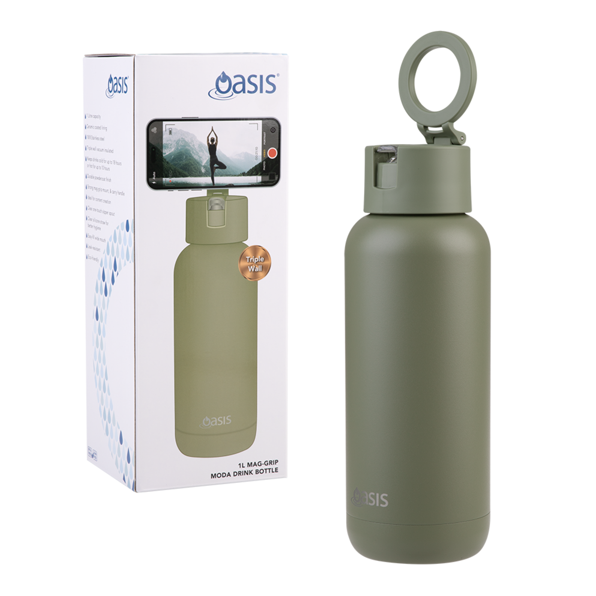 OASIS MAG-GRIP STAINLESS STEEL INSULATED MODA DRINK BOTTLE 1L - OLIVE GREEN
