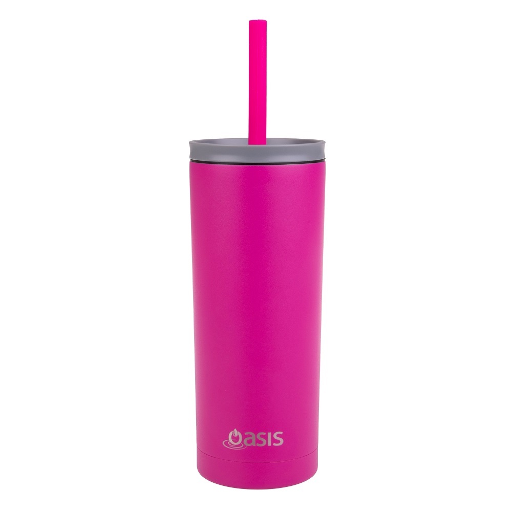 OASIS STAINLESS STEEL 600ml SUPER SIPPER WITH STRAW - FUCHSIA