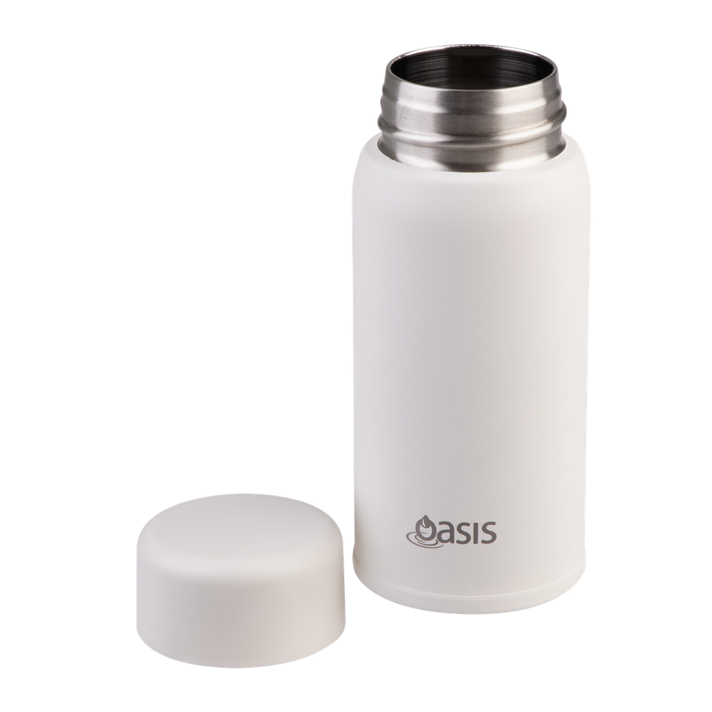Small in size, big on performance. The Oasis Mini-Mini Drink Bottle is designed for convenience on the go, keeping your drinks at the perfect temperature in a sleek, compact form. Crafted from premium 18/8 stainless steel inside and out, it features double wall vacuum insulation to keep beverages cold for up to 12 hours or hot for up to 4. A durable powdercoat finish resists everyday wear, while the leakproof screw-top lid ensures worry-free hydration wherever you take it. With its minimalist design and eco-friendly construction, this bottle is the perfect pocket-sized companion for daily life.
