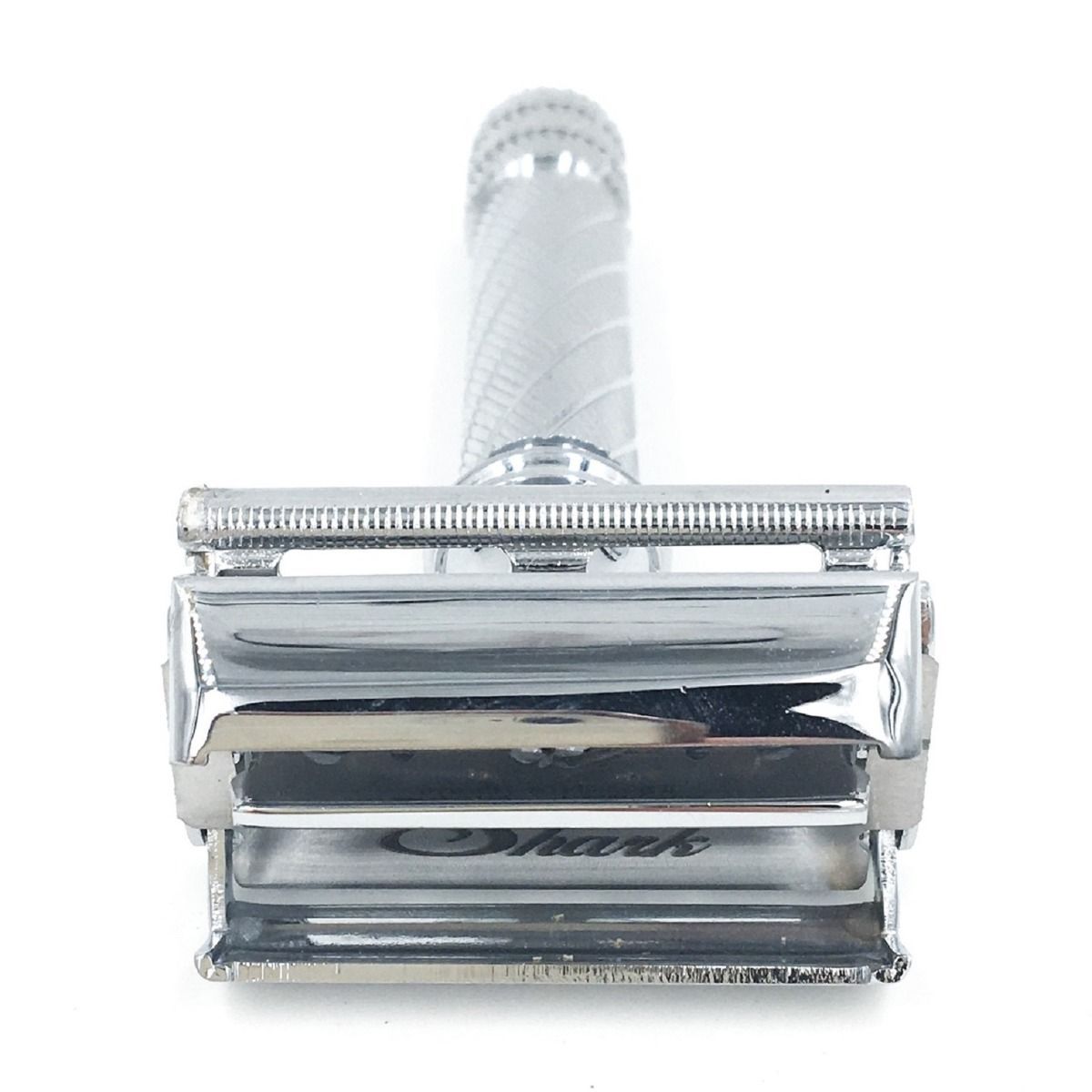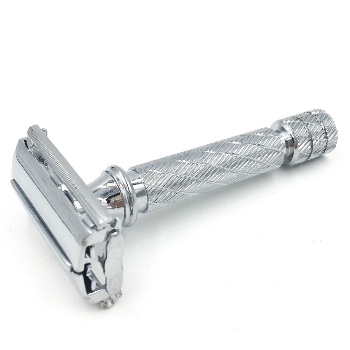 The Parker 87R is a hefty little safety razor with the world famous Parker Twist to Open head for a close, comfortable shave. This is a short handle razor with a classic 3 inch razor. Twisting the knob on the bottom of the razor will open the butterfly doors for easy blade insertion. Its beautifully patterned handle is textured to provide a sure grip, even with wet soapy hands.