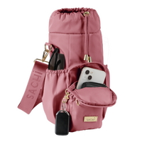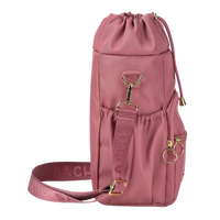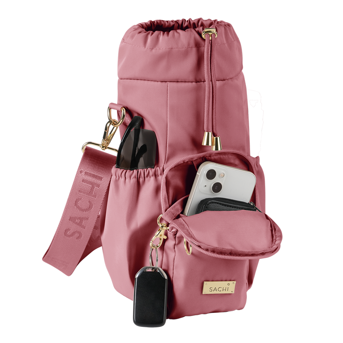 This fashionable bag with stylish adjustable, removable crossbody strap, and drawstring closure is ideal for transporting water bottles, wine, and accessories hands-free.