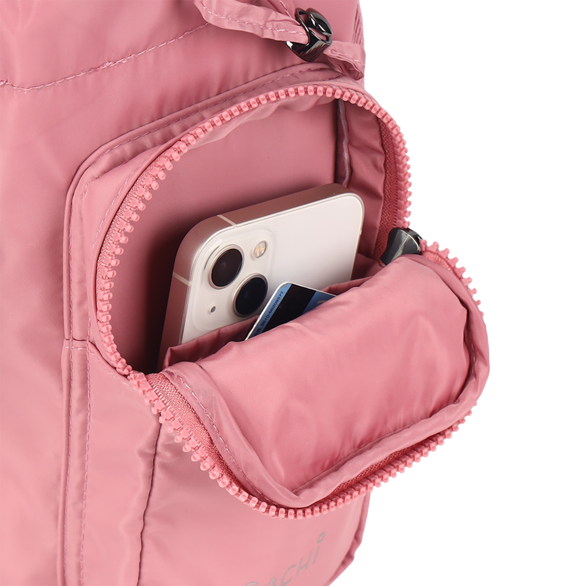 Featuring an adjustable crossbody strap with jacquard Sachi branding, this bag offers comfort and versatility whether you’re commuting, travelling, or out for a walk. Its modern design and durable, easy-clean material make it as stylish as it is functional.