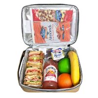 - Insulated bag; suitable for warm or cold food & drinks.
