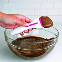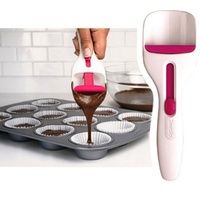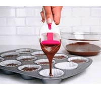 The Tovolo Cupcake Scoop is the easiest and most tidy way to fill cupcake pans and liners. Just scoop the batter and then place the curved end over your pan to dispense the perfect amount every time. The silicone plunger keeps fingers clean.