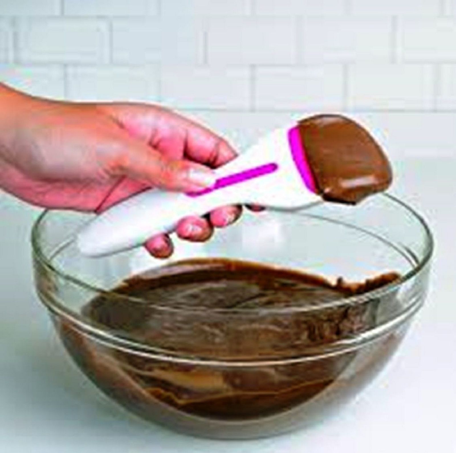 - Silicone plunger scrapes scoop clean