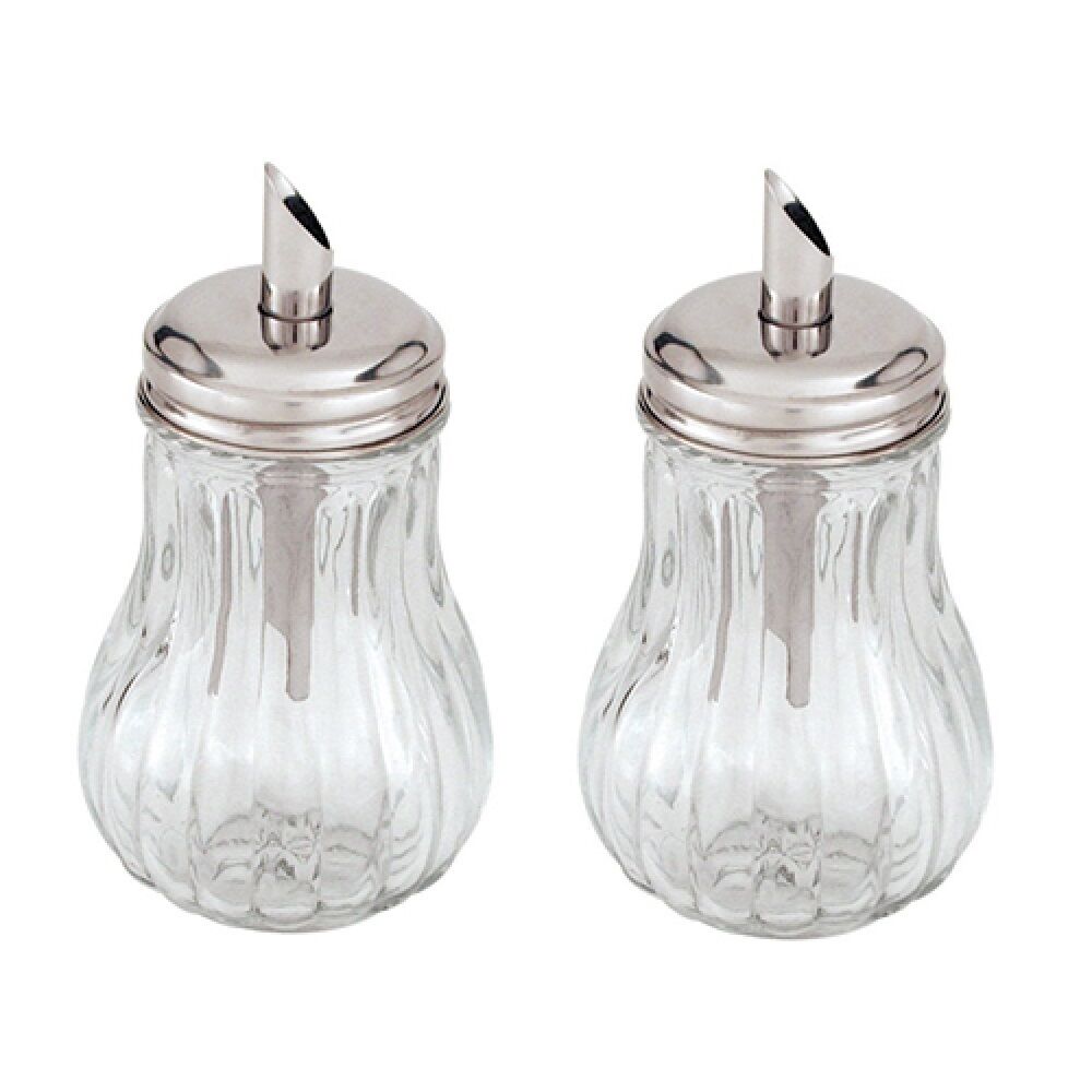 These are a glass sugar dispenser for storing and dispensing sugar. They are ideal for placing on the tables of Cafes and Restaurants containing either white or raw sugar so your customers can easily dispense the desired amount onto a teaspoon then into their tea or coffee. They can also just pour a whole truckload of sugar into their drink if they have a particular sweet tooth.