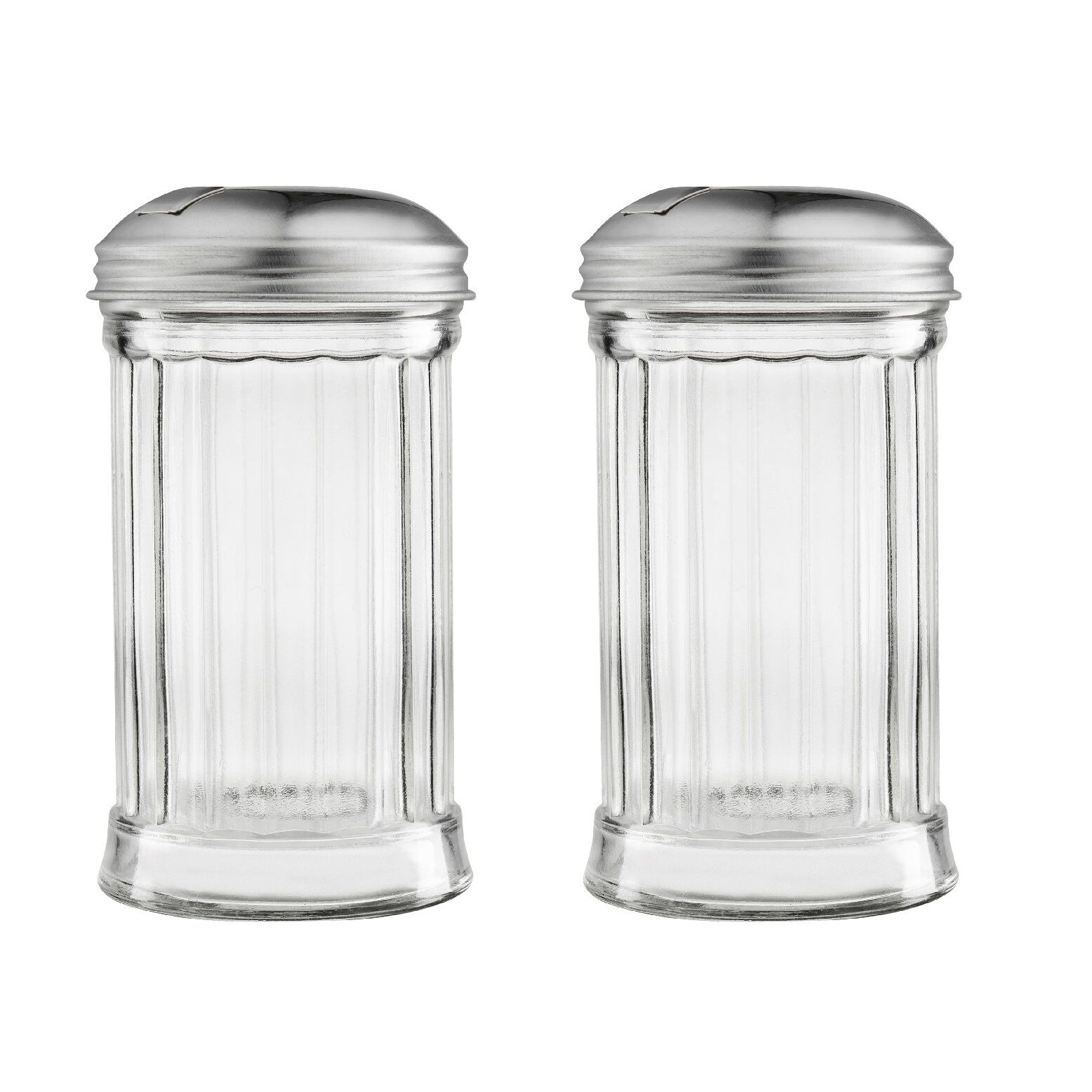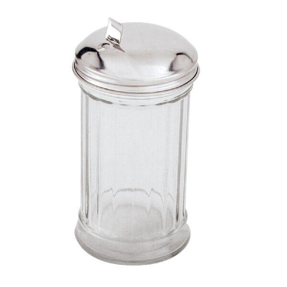 These are a glass sugar dispenser for storing and dispensing sugar. They are ideal for placing on the tables of Cafes and Restaurants containing either white or raw sugar so your customers can easily dispense the desired amount onto a teaspoon then into their tea or coffee. They can also just pour a whole truckload of sugar into their drink if they have a particular sweet tooth.